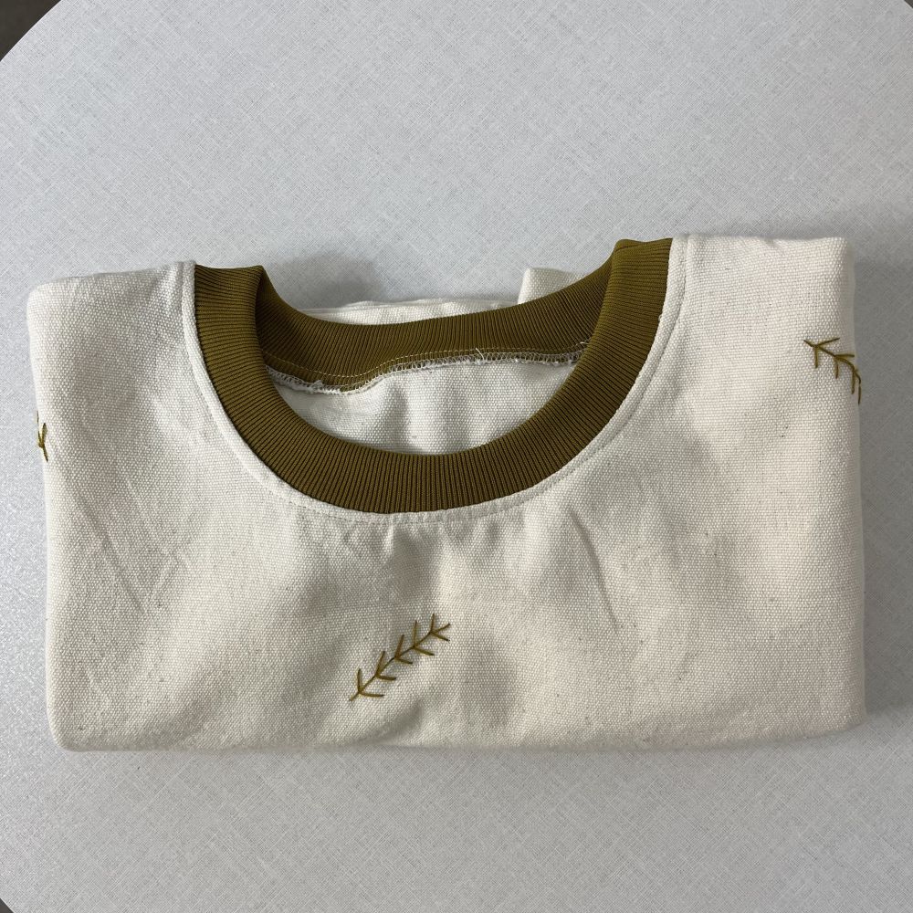 تیشرت پنبهای دستبافت با گلدوزی طرح برگ | سبک، طبیعی و خاص