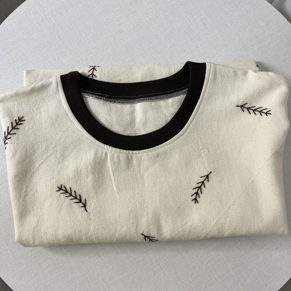 تیشرت پنبهای دستبافت با گلدوزی طرح برگ | سبک، طبیعی و خاص