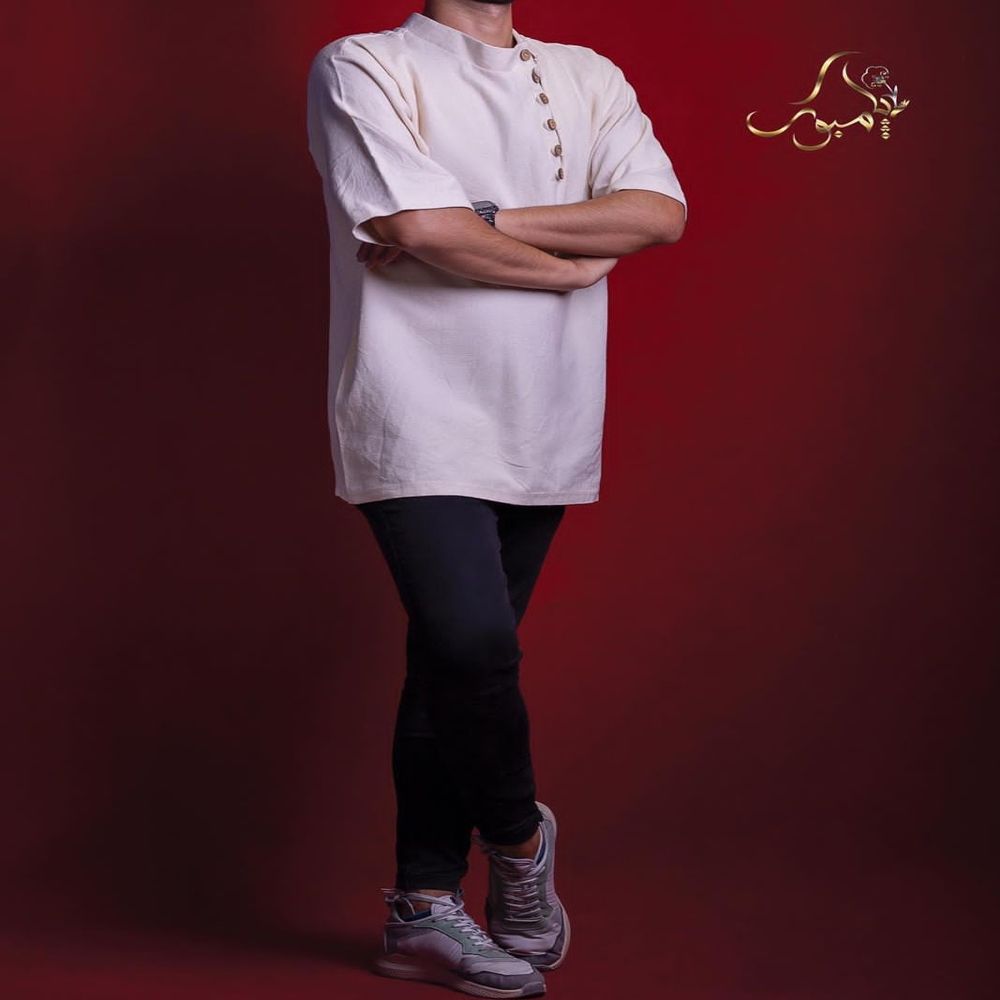 تیشرت پنبه ای/دست بافت/ارگانیک/شش دکمه/یقه کج